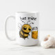 A little bee floats clumsily toward a smiley honey jar. Unpolished kawaii lines and the sweet wordplay capture simple joy.