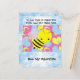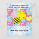 Söt tecknad humla med rosa och blå hjärtan mönster och blå himmel. Önska din vän en lycklig valentindag med den här roligten barn, flickor eller barn skolklassrumsvalentin på ljusa färger.