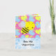 Söt tecknad humla med rosa och blå hjärtan mönster och blå himmel. Önska din vän en lycklig valentindag med den här roligten barn, flickor eller barn skolklassrumsvalentin på ljusa färger.