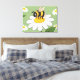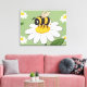 An illustration from a photograph of a bee on a white daisy printed on a canvas.