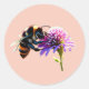 Ett dynamiskt bin livnär sig på en blommande lila blomma. Bönets stripade kropp står i kontrast till de mjuka petalerna, där pollineringens skönhet framhävs.