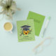 Lägg till en text för namn och grattisar till denna gåva/detta kort som innehåller en roligt som illustrerar en kapsyl för Studenter som dekoreras med vattenfärg Solblommor och Humla och ord: "Jag är Buzzing!". Om din son eller dotter, vän, kollega, medarbetare, barnson, barndotter kärlek binder honom eller henne, kommer de att förfära denna Humla-temade studenten gåva/kort.
