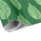 Omslagning papper i en övertextil mönster av bokat löv, digitalt utgiven som mjuk, texturerad, kritaktig teckning, i pastellköttfärs grönt på en djup grönt/vintergrön bakgrund