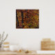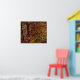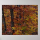 Denna poster har en underbar, imponerande utformning av en bok-träd-skog i strålande höstskog av rött, brunt, gult och guld. Några mörkar bruna trunkar söker igenom löven.