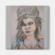 En flicka med en beehive-hårduk som går ner från en färgpenna teckning! med slogan Beehive Sten