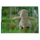 Teddy beertje dat op een schommel zit in de natuur. Een avontuurlijk beeld van een speelgoed beertje dat op avontuur is. Een droom die tot leven komt door speelgoed een activiteit te laten doen. Een zacht beeld dat schattig overkomt door een fluffie vacht van de beer. Geschikt voor in een kinderkamer met mooie dromen.