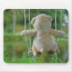 Teddy beertje dat op een schommel zit in de natuur. Een avontuurlijk beeld van een speelgoed beertje dat op avontuur is. Een droom die tot leven komt door speelgoed een activiteit te laten doen. Een zacht beeld dat schattig overkomt door een fluffie vacht van de beer. Geschikt voor in een kinderkamer met mooie dromen.