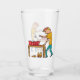 En mästare på ölpongspelare leans på bord, siktar på sin pingpong boll på det röda plastölet kopp och väntar på att de ska stoppa flyttan. Det har varit en lång natt med en sista chans till seger. En roligt teckning för ölpongspelare och fläkt för att dricka spel.