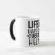 Add hot liquid to reveal your design as the black mug turns white.