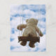 Beertje op schommel met bewolkte blauwe lucht. vykort