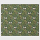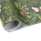 A charming pattern of bees, lush green foliage, and red berries on a dark green background, creating a vibrant and nature-inspired design.