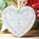Den här charmerande julprydnaden innehåller det hjärtliga ordspråket "Främd till morföräldrar", som på ett utmärkt sätt kompletteras med vackra fotavtryck, din baby namn, och födelsedatum, som alla är inneslutna i ett handdraget hjärta ram med en underbar båge.