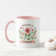 Fira glädjen av att bli mormor med denna charmiga mugg, med en vacker akvarellblomma-design. Ljus rosa, teal och gröna nyanser skapar en delikat och hjärtlig stil. Det är ett idealiskt sätt att tillkännage en graviditet eller en gåva till en blivande mormor, perfekt för hennes favoritdryck.