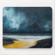 An abstract seascape capturing the moment of tension before a storm breaks. Darkened skies, restless water, and fractured gold lines suggest energy held in suspension, where calm and chaos briefly coexist within a vast, open horizon.