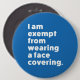 Många människor bär masker och andra täckningsmaterial från ansikte för att skydda sig mot COVID-19 och liknande infektioner. I vissa delar av världen finns det ett rättsligt krav på bära av dem i vissa områden. Alla kan dock inte bära en mask. Vissa människor är undantagna av hälsoskäl eller andra skäl. Barn ges ofta undantag. Även astma, andningssvårigheter, ångest och många andra villkor rekommenderas att inte bära ansikte masker. Syftet med den här utformningen är att klargöra detta för alla runt om i er. Texten är tydligt stater: "Jag är befriad från att bära ett ansikte-omslag".