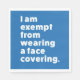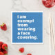 Många människor bär masker och andra täckningsmaterial från ansikte för att skydda sig mot COVID-19 och liknande infektioner. I vissa delar av världen finns det ett rättsligt krav på bära av dem i vissa områden. Alla kan dock inte bära en mask. Vissa människor är undantagna av hälsoskäl eller andra skäl. Barn ges ofta undantag. Även astma, andningssvårigheter, ångest och många andra villkor rekommenderas att inte bära ansikte masker. Syftet med den här utformningen är att klargöra detta för alla runt om i er. Texten är tydligt stater: "Jag är befriad från att bära ett ansikte-omslag".