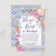 Inbjudan gäster sina favoritrecept med den här eleganten möhippa-kort för recept, perfekt för ett kökstemat firande. Utformningen har klara blommigtar med vattenfärg i skuggor av rosa, orange och lila, parad med ett tunt Medelhavsinstruerat blått och gult pannad mönster. Ett charmerande skript tillför en personlig beröring, skapar det en vacker keepsaké för bruden när hon påbörjar sin nya kulinariska resa. Idealisk för italienska, Capri- eller Tuscan-inspirerade möhippor!