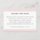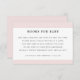 Inkludera dessa kraftfulla inklusionskort med din inbjudan till barnkalaset för att begära böcker istället för ett kort. Designen har en topp och botten med rosa ränder som ramar in meddelandet. Designad för att matcha vår Watercolor Clouds barnkalas kollektion. Personifiera från topp till botten med början i titeln, sedan ett meddelande och den hedrade gästens namn och barnkalasets datum.