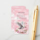 En underbar vit stork som kommer med en bunt rosa flicka. Kortet är en begäran från Bok om babyduschen. Baksidan och framsidan av inbjudan är en bakgrund på samma mönster Med rundade hörn som matchar inbjudan och som skrivs ut på Linen-Papper