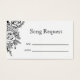 Ett sång-visitkort som matchar Halloween-blommigtens tatueringsintervall. Den här designen har en enkel illustrerad utformning av ro, löv, kakor och en spindel. Tanken är att ni skickar dessa kort med era inbjudningar till gästerna att skicka tillbaka med sin OSA och be om sång för party eller bröllopsmottagningen. Alternativt kan du också sprida dem på bord eller lämna dem på DJ-båset så att gästerna kan fylla ut dem medan de njuter av party.