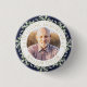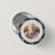 En elegant marinblå akvarell greenery personlig foto firande av livets minneshögtid begravningsknapp. Designad av Thisisnotme©