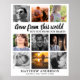 En minnesaffisch att visa upp på en älskad persons begravning eller vaka, med 9 fyrkantiga fotografier, den söta citatet 'Borta från denna värld, men inte från våra hjärtan', deras namn och datum. Bakgrunden kan ändras till valfri färg för att passa begravningstema.