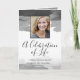 Det moderna vikta begravnings- programet i kol, blekgrått och vit, med en nätt calligraphy skrivar. På täcka, ett foto av din älskade tillsammans med deras namn och år bo. Insida kan du skriva dödsrunan och programmera. På baksidaen kan du tillfoga tack till personer.