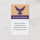 Begravningsbyråvisitkortmallen med en duvasilhouette och lilor och korallfärg schemalägger. Kortet har en modern ren design och är fullständigt anpassadet. Perfekten för en begravningsbyrå, en begravningsentreprenör, en mortician, ett bårhus, en kremering eller en förlust servar lägerledare.