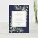 En elegant marinblå personlig målad vattenfärg med gröna blad för firande av livets minne, vikt inbjudan. Designad av Thisisnotme©