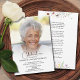 En inbjudan till firande av livet har ett foto av din älskade, deras namn och detaljer på framsidan. På baksidan finns det en plats för en bön, dikt eller dödsannonsen markerad med diskreta vildblommor. Beställ NERLADDNING och/eller UTTRYCKT. MATCHANDE artiklar i vår samling.