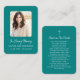Detta enkla minneskort kan ges som en keepé på en Firande av Life eller begravningstjänsten eller skickas som en speciell hyllning till dem som inte kunde närvara. Anpassa det här kortet med ett favoritfoto av din avskurna person, detaljer och ditt val av bön eller dikt på baksidan av kortet. Eleganten har ett skript med snyggt som kan ändras till valfritt färg. Enkel att anpassa bild, text och bakgrund färg på kortet.