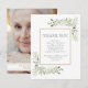 Elegant begravning akvarell gröna blad tackkort. Du kan anpassa med ditt eget tackmeddelande och avlidnas foto på baksidan. Designad av Thisisnotme©