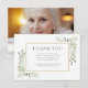 Ett elegant tackkort för begravning med elegant botanisk bladverk som ramar in ditt personliga tackmeddelande och speciella foto på baksidan. Designad av Thisisnotme©