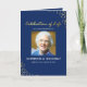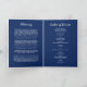 Firande av livsprogrammet med en blå snyggt som kan ändras till vilken färg som helst, på framsidan ett foto av den avlidne, deras namn, data och guld glitter. på insidan är en matematisk lista och serviceordning, och på baksidan en tackkort och mottagningsdetaljer.