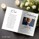 Skapa ett vackert och elegant begravningsprogram för att hedra en nära och kära. Detta svart-vita program för Livets Firande innehåller utrymme för en dödsannons, biografi, ordning för ceremonin, evenemangsinformation och ett foto. 🖤 Perfekt för: • Livets Firande-ceremoni • Begravningstjänst • Minnesgudstjänst-program • Dödsannons • Utskrivbart minnessouvenir Lätt att anpassa online – ingen programvara behövs. Skriv ut hemma eller på valfri lokal tryckeri. Ett enkelt och meningsfullt sätt att skapa en hjärtlig hyllning på egen hand.