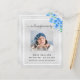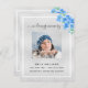 Ett tvåsidigt program för elegant. En faux silver-bakgrund, en vit ram, blå glöm-mig-icke-blommigt och plats för ett foto. Anpassa och lägg till namn, data och din text.