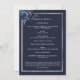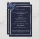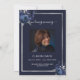 Ett tvåsidigt program för elegant. En mörk blått bakgrund, en faux silver ram, blå blommigtar och ett fotomatutrymme. Anpassa och lägg till namn, data och din text.