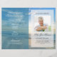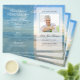 Lättanvänd mall för begravningsprogram med strandtema, med redigerbar bild och text.