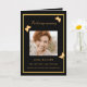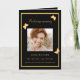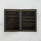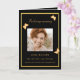 Ett elegant 4-sidigt program. En svart bakgrund, en falsk guldram och utrymme för ditt foto på framsidan. Dekorerad med 3 gyllene fjärilar. Anpassa och lägg till namn, datum och din text. Gyllene text.