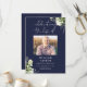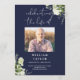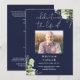 Ett elegant marinblått, botaniskt akvarell grönska begravningsprogram. Designad av Thisisnotme©