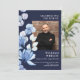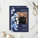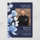 Ett elegant personligt begravningsprogram med foto och blå blommor. Designad av Thisisnotme©