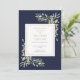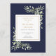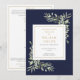 Ett elegant modernt personligt botaniskt vattenfärgsprogram med grönska i marinblått och guld för begravning eller minnesgudstjänst. Designad av Thisisnotme©