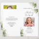 Ett elegant begravningsprogram med grönska och foto. Designad av Thisisnotme©