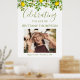 Begravningsaffisch med vattenfärg grön lövverk, citroner, ett foto av din älskade, deras namn och datum.