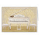 Ett vit- och guldpiano uthärdar förfråganen "behar sjunga på vårt bröllop" som flankeras av två Barock-stil stolar i en elegant inställning som presenterar en blek damastast bakgrund, ett ljust wood golv och en sniden valvgång.