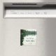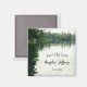 En stillastående flodscen är bakgrunden till denna bröllop spara datum-magnet - en liten ö kan ses i lugn men lätt upprippad vatten under ett övergjutet himlar och avlägsna evergreens och sten strukturer | del av samlingen av Rustic Bröllop i bergstrakterna Sjö efter katz_d_zynes > https://www.zazzle.com/collections/119499271518309609