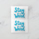 Ett 4-tums x 5,6-tums hälsningskort med "STAY KONSTIG" i spelande blått text, perfekt för att skicka ett snabbt meddelande till vänner.