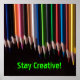 Den här poster säger "stanna kreativ" på den.