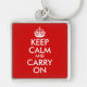 Behåll lugn och fortsätt med nyckelkedjan fyrkantig silverfärgad nyckelring