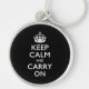 Behåll lugn och fortsätt med svart rund silverfärgad nyckelring